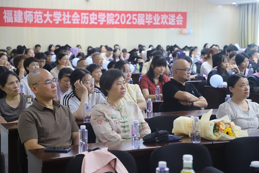 近日,一场暖心的毕业生欢送会在福建师范大学社会历史学院举行。学院党委副书记范瑞锭,教师代表骆志煌、郑辉,院团委书记兼研究生辅导员巫志峰,毕业班辅导员傅利琴、楚一泽,原2021级辅导员黄敬兵,兼职辅导员及2025届本硕博毕业生及部分毕业生家长近500人出席欢送会。