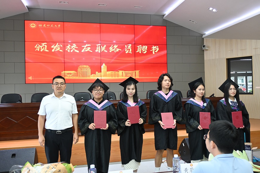 范瑞锭为毕业生送上临别寄语。他首先强调,以好奇为舟,在未知中破浪,希望同学们能保持好奇心,保持追求历史本真的心对待即将迈进的下一阶段;其次,以坚持为匕,在平凡中深根,以严谨的态度和持之以恒的毅力深耕细作;其三,怀揣真诚之心,在岁月中沉淀,始终保持对历史对未来的敬畏之心。最后,他深切指出,学校永远是学子心灵的港湾,希望同学们常回母校看看,常常回社会历史学院看看。接着,范瑞锭为校友联络员颁发聘书并合影留念,校友联络员也为学院赠送了纪念礼物。