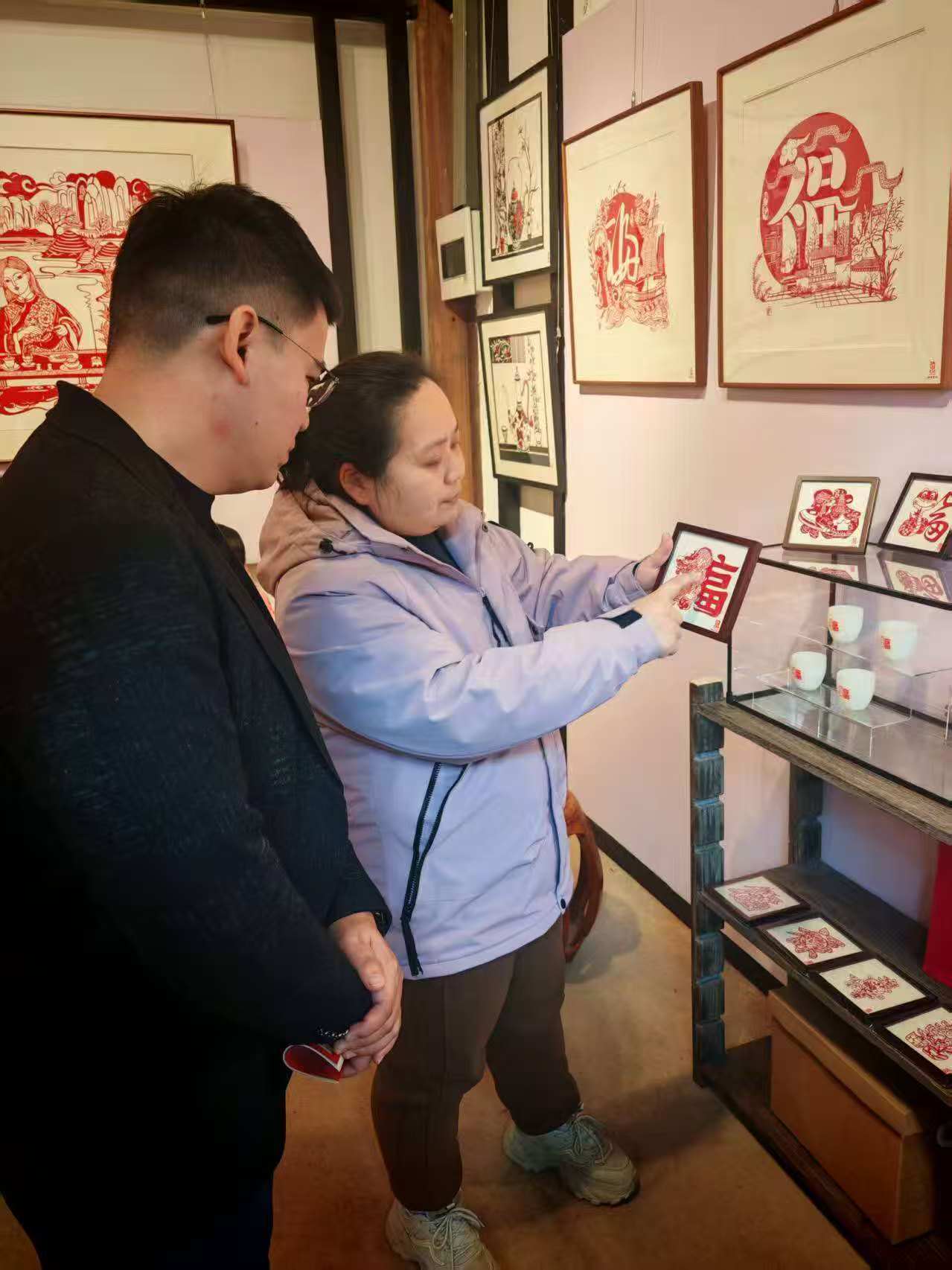 在古与今的交错之间,非遗文化与红色文化何以共生共荣?在实践队看来,红色为非遗注入灵魂,非遗为红色搭建传播载体。在福建非遗博览苑内,队员们与剪纸、团扇传承人面对面交流,其剪纸作品线条细腻、寓意深刻。队员们了解到,福州剪纸、寿山石雕等非遗技艺,正通过文创、线下体验等形式走进大众生活。而巧妙融入红色文化元素,赋予了非遗作品新的时代内涵与价值。而在吴石故居门口,扇画传承人罗知秋正专注创作红色主题作品,将吴石肖像与福州山水、民俗元素结合,笔墨细腻。他表示,“红色+非遗”模式既能让传统技艺焕新,也让英雄故事摆脱生硬说教,实现活态传播。