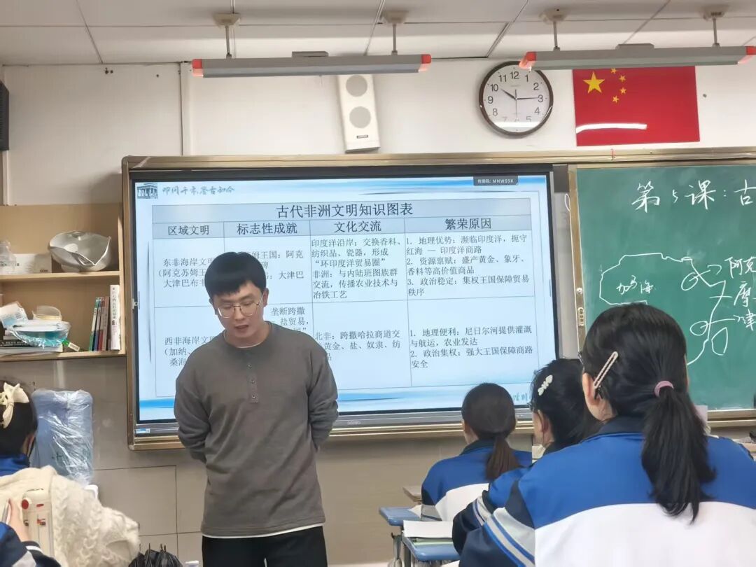 听完张富秦老师《古代非洲与美洲》的公开课,我收获颇丰。课堂以任务驱动引导学生自主思考,将历史与地理两门学科巧妙地融合在一起,并且利用AI技术辅助教学,教学的形式让人眼前一亮,加深学生对本节课知识点的印象。在评课方面,各个学校的老师们也指出了课程需要完善的意见,让我们意识到了跨学科教学和核心素养培养的重要性,为我们以后的课堂设计和教学方式有很大的启示。