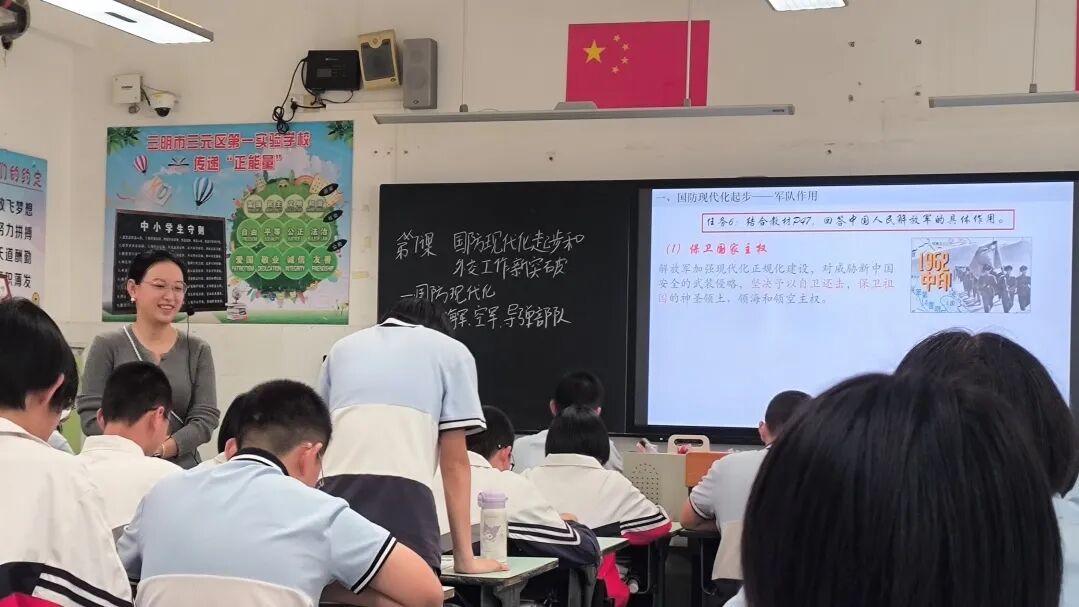 经过前期学习与积累后,实习队员们依次走上讲台,以扎实的教学功底与认真负责的态度,完成了八年级下册第七课《国防现代化建设和外交工作新突破》的常态课教学。六位队员反复打磨教学环节、优化问题设计逻辑,力求打造有深度、有温度的历史课堂。授课中,队员们借助时间轴、表格、史料与历史图片,梳理国防与外交发展脉络;引导学生读图析史、把握时代背景,认识我国在社会主义建设时期的国防与外交成就,理解综合国力与国际地位的提升;同时紧扣单元知识体系,使学生领悟外交与国防建设为新的历史时期开创中国特色社会主义提供了宝贵经验。