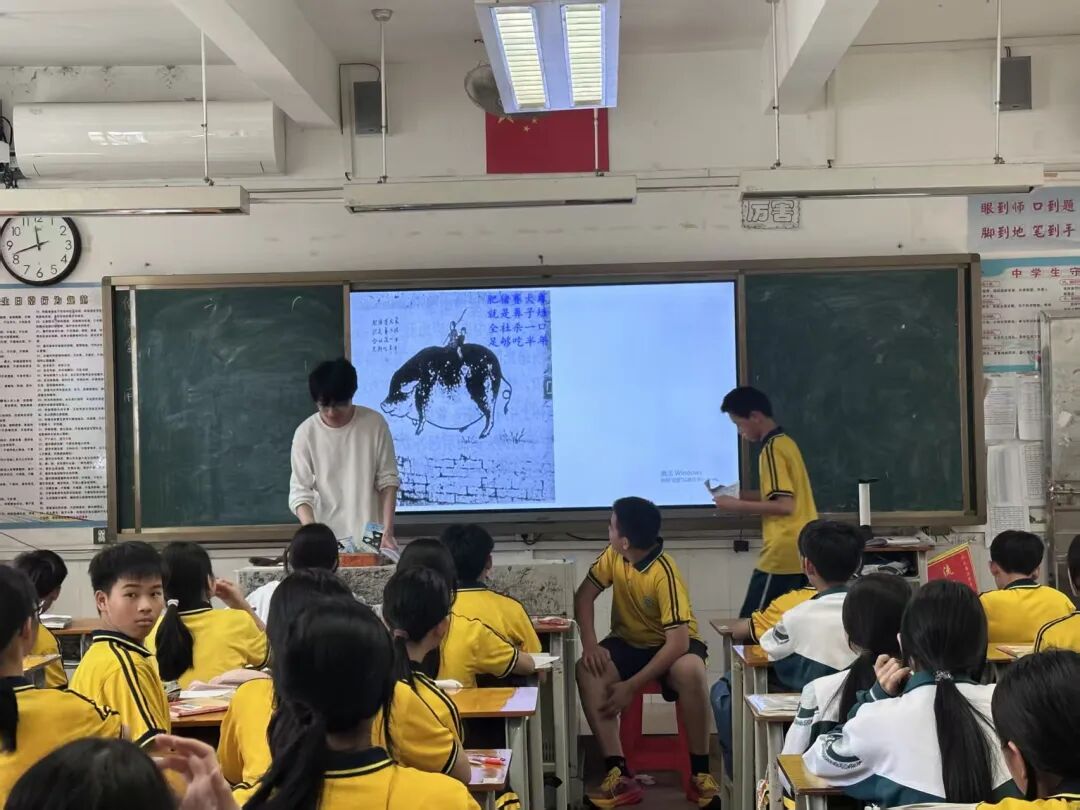 在日常德育工作中,实习生们将历史素养培育与校园活动深度融合。陈海涛结合学雷锋纪念日,协助实习学校策划系列主题活动,引导学生在实践中感悟奉献精神,将历史教育与美德培育有机融合;蒋兴浪在禁毒宣传活动中,以近代中国禁毒史为脉络开展讲解,帮助学生树立禁毒意识,筑牢成长防线;赖洪平在完成日常教学任务之余,主动投身校园文体活动的组织统筹工作,协助初二年级拔河比赛顺利举办,向学生传递团结协作、奋勇争先的集体意识,以实际行动践行育人初心;周咨言在开学筹备阶段便提前到岗,主动参与寒假校园主题展览的策划与布置工作,对待每一处细节都认真打磨、踏实肯干,用实际行动为校园文化建设贡献青春力量;刘莉娟在亲历了学校妇女节系列庆祝活动后,这份对教育工作者的尊重与关怀让她深受触动,她表示将以身边优秀的女教师为榜样,坚守育人初心,深耕历史课堂,在教育实践中绽放青春芳华;叶燕娥深耕德育课堂的学习与实践,全程细致观摩 “种一抹绿意,守一片山河” 植树节主题班会,认真学习将生态理念、家国情怀与责任担当自然融入班级活动的育人方法,不断拓宽自身的育人视野。叶海滨在培优补弱工作中,以情动人,使不少学生放弃午休时间前来背诵;在主题班会上,他向学生介绍师大的办学历史和育人特色,为学生在心中埋下一颗种子。