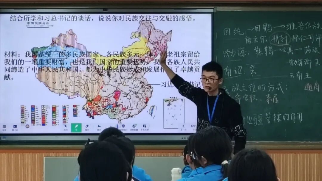 初一年级组的队员们设计多样化教学方案,例如以地图为载体,引导学生构建时空观念;结合当地学生学情,充分运用趣味设问、视频科普等方式进行教学,贴合初一年级学生认知特点。部分队员还借鉴专题讲座所学,尝试情境教学法,让课堂更具吸引力。初二年级组则聚焦八下历史新教材中国当代史相关内容,更多运用史料研读、分层设计问题链等形式,让学生在思辨中理解历史发展逻辑。