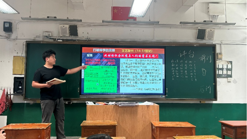 在备课环节,队员们全身心投入实习第一课——《中外历史纲要下》第8课《欧洲的思想解放运动》的打磨。空闲时间,大家开展集体磨课,逐字逐句推敲教学语言,细致优化课件设计、课堂互动与教学详案等细节,反复打磨每一个教学环节。从观摩记录、研讨交流,到自主备课、精细打磨,队员们在实践中反思、在交流中成长,教学能力与专业素养持续提升。全体队员始终秉持认真踏实的工作态度,以精益求精的精神雕琢教学细节,立志为学生呈现优质鲜活的历史课堂。