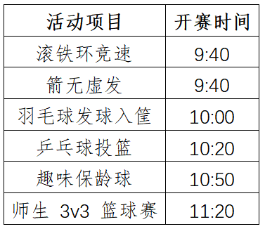此外,师生3v3篮球赛中,学生队伍和老师队伍各上场3名队员,每场比赛时长为10分钟(不停表),若在比赛结束前某队率先得到15分,则直接获胜。