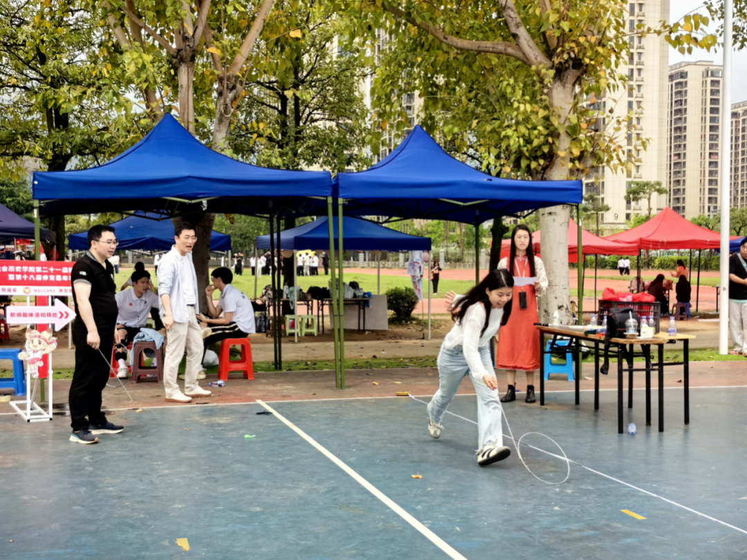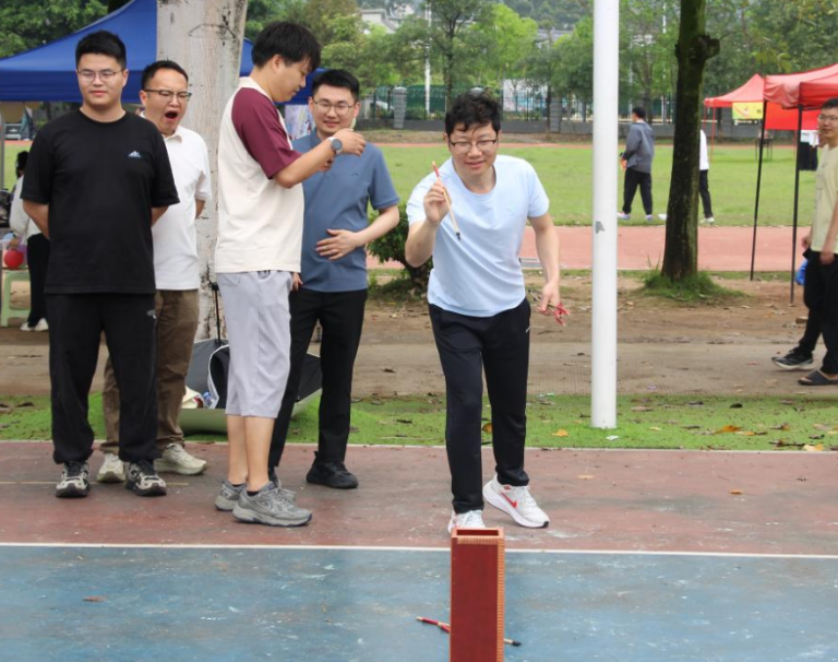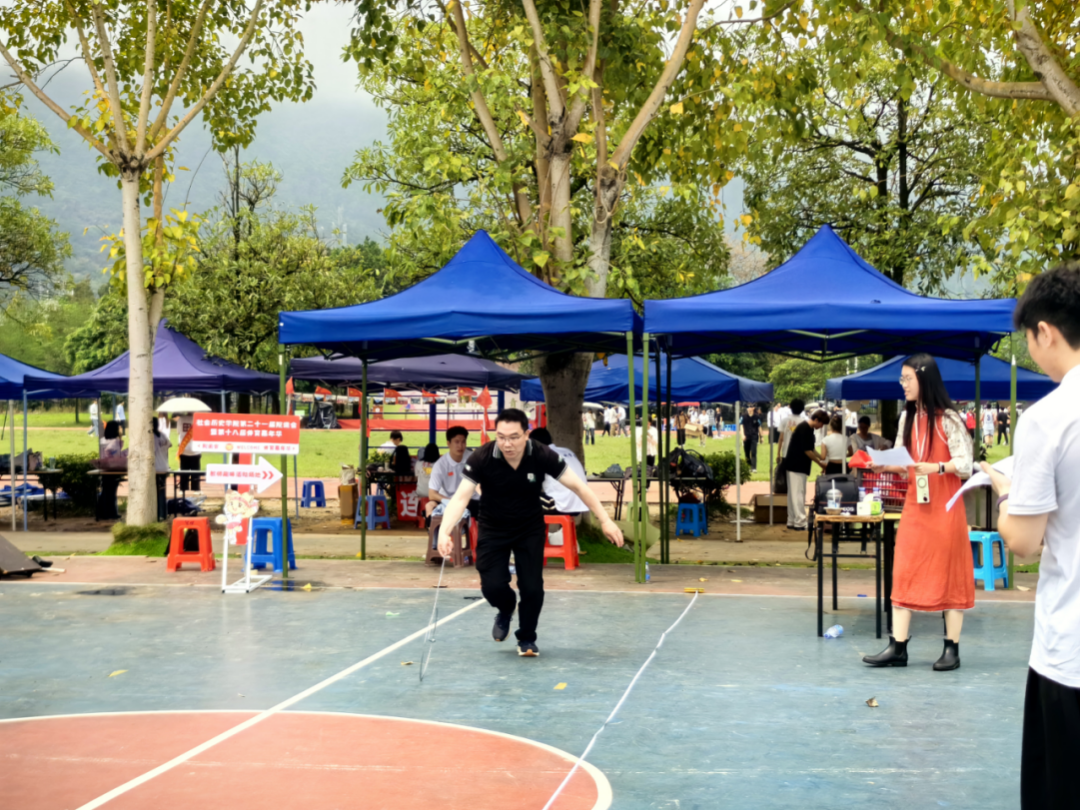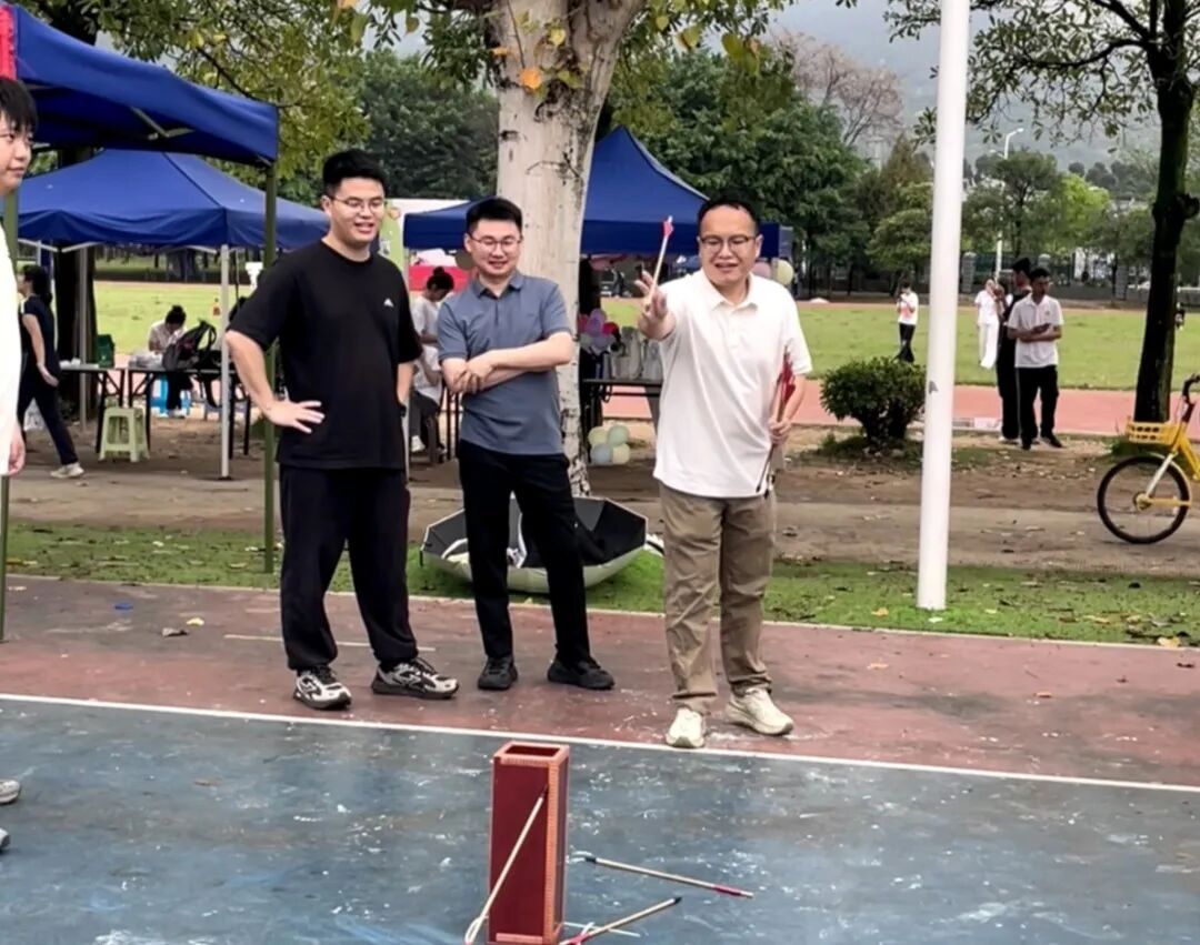项目“箭无虚发”——仿古投壶,为赛场增添了一抹典雅与趣味的色彩。老师们手持特制木矢,屏息凝神,专注投掷。投矢在空中划过,或应声入壶,或擦边而过,紧张与雀跃的情绪在方寸之间流转,传统体育的智慧与现代娱乐的结合,让大家在竞技中感受了别样的文化意趣。