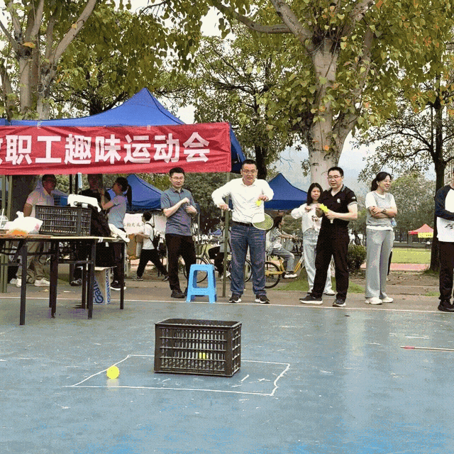 一旁的“乒乓球投篮”区域,只见老师们凝神静气,或抛掷弧线,或巧借桌面反弹,小小的乒乓球划出优美轨迹,精准入筐,展现了出色的手感与控制力。