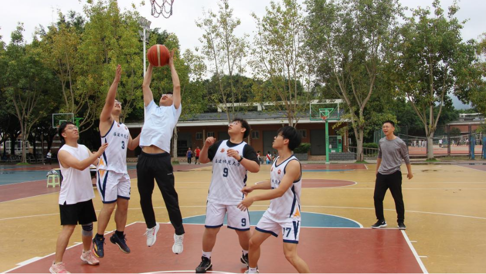 最受瞩目的“师生3v3篮球赛”更是将气氛推向高潮。师生同场竞技,攻防转换迅捷,默契传球、犀利突破、稳健投篮,每一次得分都凝聚着智慧与汗水,充分展现了团队拼搏精神和亦师亦友的深厚情谊。