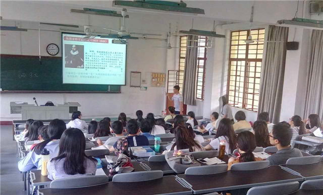 2017年4月18日下午两点三十分,社会历史学院研究生会“教师技能培训班”之名师示范课在文科楼301教室如期举行。此次邀请的名师是福州一中的曾木荣历史老师(中山大学中国近现代史硕士)。曾老师以人民版历史必修一中的《英国代议制的确立和完善》进行了一堂生动的示范课。在场听课的学生除了研究生培训班的学员,还有慕名而来的本科同学。本次活动旨在让同学们学习名师的上课技巧,反思自己的不足之处,从而提高自己教师技能。